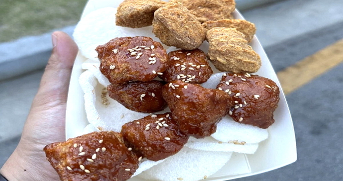 A씨는 "남원 춘향제 갔는데 길에서 닭강정을 17,000원에 팔더라. 뒤에서 (닭강정을) 튀겨서 주는 구조였다. 조카들이 닭강정을 사달라고 해서 기분 좋게 양념 반 프라이드 반을 시켰다"고 당시 상황을 설명했다.