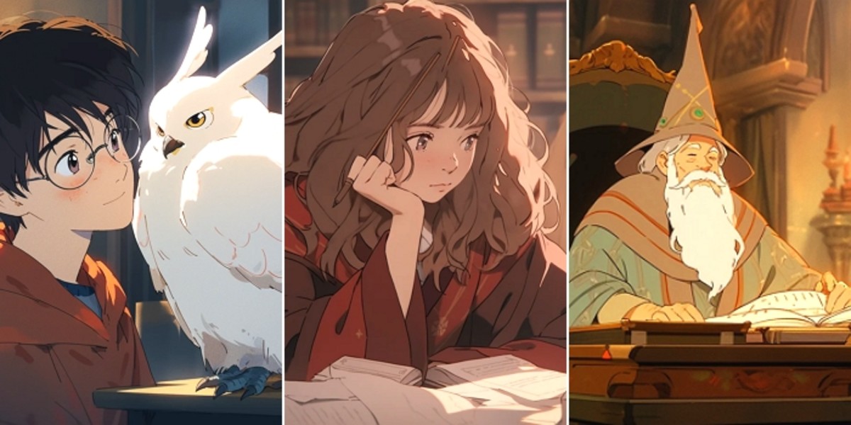 만약 해리포터의 캐릭터들을 AI에게 지브리 애니 그림체로 그려달라고 하면 어떤 결과가 나올까.