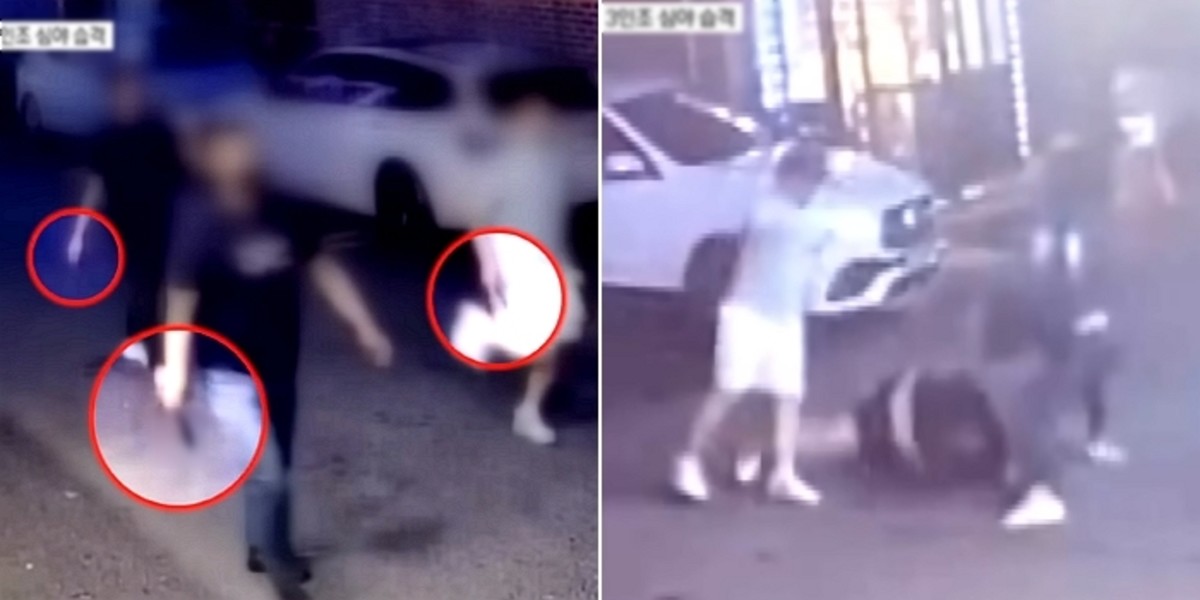 당시 남성들은 골목에 심야 영업을 하는 가게들이 많았는데도 대범하게 범행을 저질렀다. 싸움을 말리던 여성은 바닥으로 쓰러졌다.