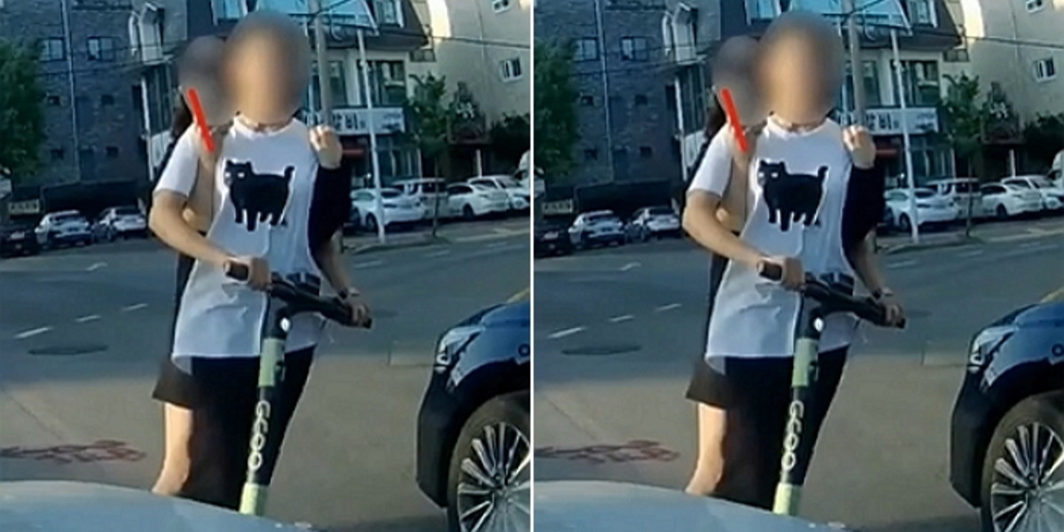 A씨에 따르면 킥보드에는 두 명의 여성이 타고 있었다. 헬멧은 당연히(?) 착용하지 않은 상태였고, 뒤에 탄 여성은 스마트폰을 보고 있었다.