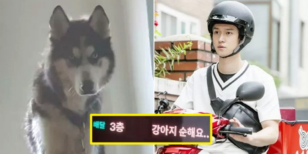 배달 기사라고 밝힌 글쓴이 A씨는 자신에게 온 배달 메시지와 함께 다른 사진 한 장을 공개했다. 배달 메시지에는 "3층 허스키 강아지 순해요.."라고 적혀있었다.