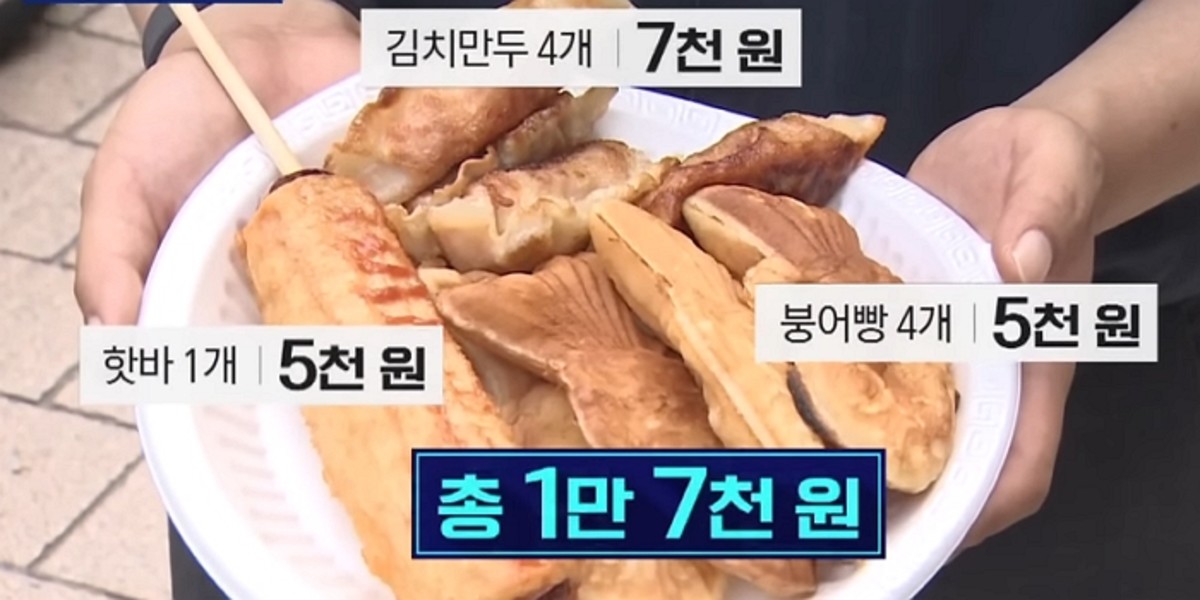 실제로 핫바 1개, 김치만두 4개, 붕어빵 4개를 사는 데에만 1만 7천 원이 들었다.