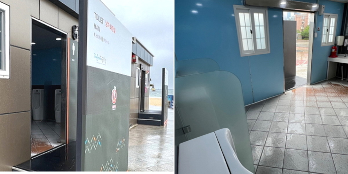 지난달 26일 제보자 A씨가 인사이트에 전한 바에 따르면 해운대 해수욕장 정문에 자리한 남자 화장실의 소변기가 '외부에서' 적나라하게 보이는 상태다.