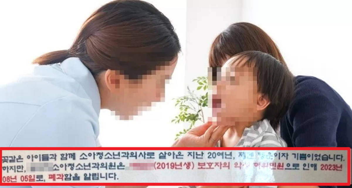 작성자인 의사 A씨는 이날 "꽃 같은 아이들과 함께 소아청소년과 의사로 살아온 지난 20여년, 제겐 행운이자 기쁨이었습니다. 하지만 OOO소아청소년과 의원은 B(2019년생) 보호자의 악성 허위 민원으로 인해 2023년 8월 5일로 폐과함을 알립니다"라고 서두를 시작했다.