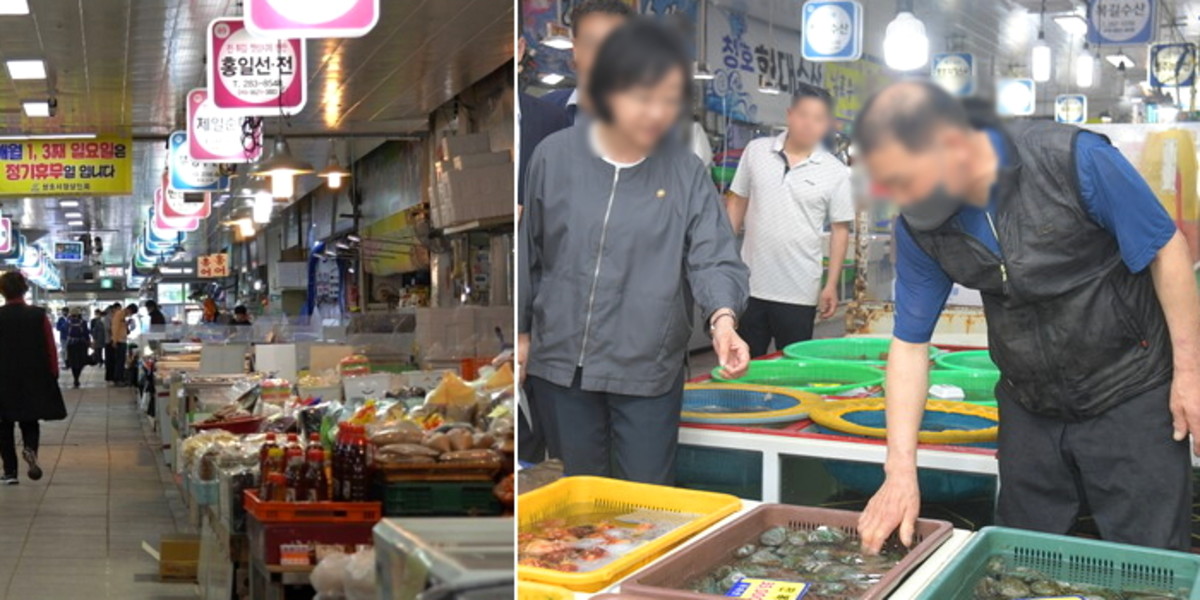 보도에 따르면 50여 개의 수산물 점포가 모여 있는 청호시장에서 소비자들을 찾기란 어려웠다.