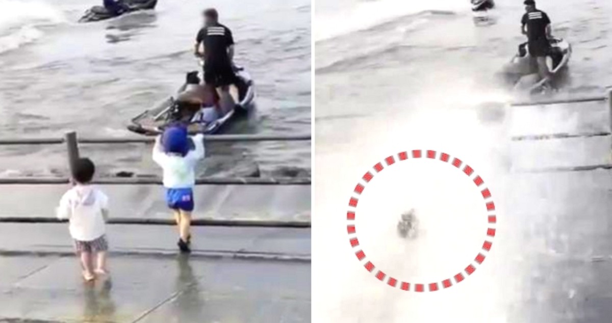 그런데 그때 한 제트스키 이용자가 물을 뿌리며 출발했다. 영상 속 한 아이는 물대포를 맞고 그대로 뒤로 쓰러졌다.