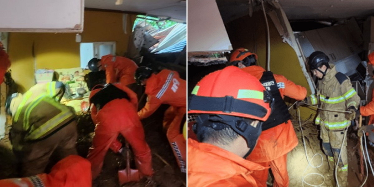 소방본부에 따르면 이날 오전 4시 18분께 "안방에 있던 아내가 토사에 매몰됐다"라는 남편의 신고를 받고 구조에 나섰다.