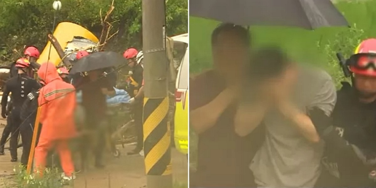 이번 폭우로 부모를 잃고 오열한 남성이 안타까움을 더하고 있다.