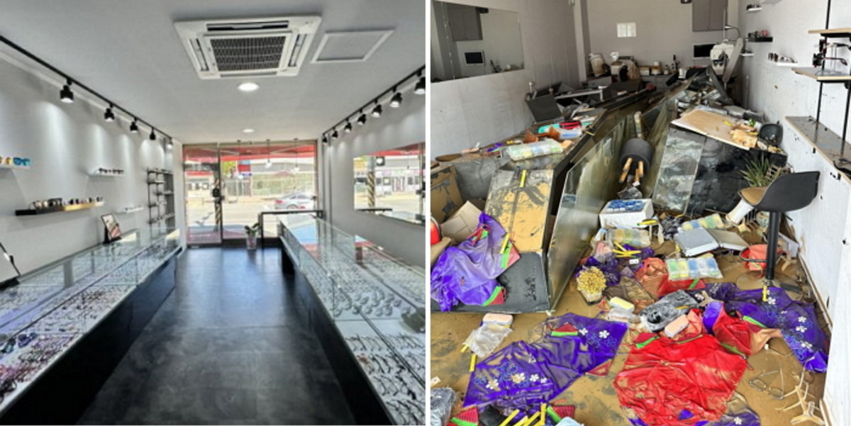 공개된 사진 속에는 넘어진 진열장과 흙탕물을 뒤집어쓴 용품들이 제자리를 잃고 나뒹굴고 있었다.