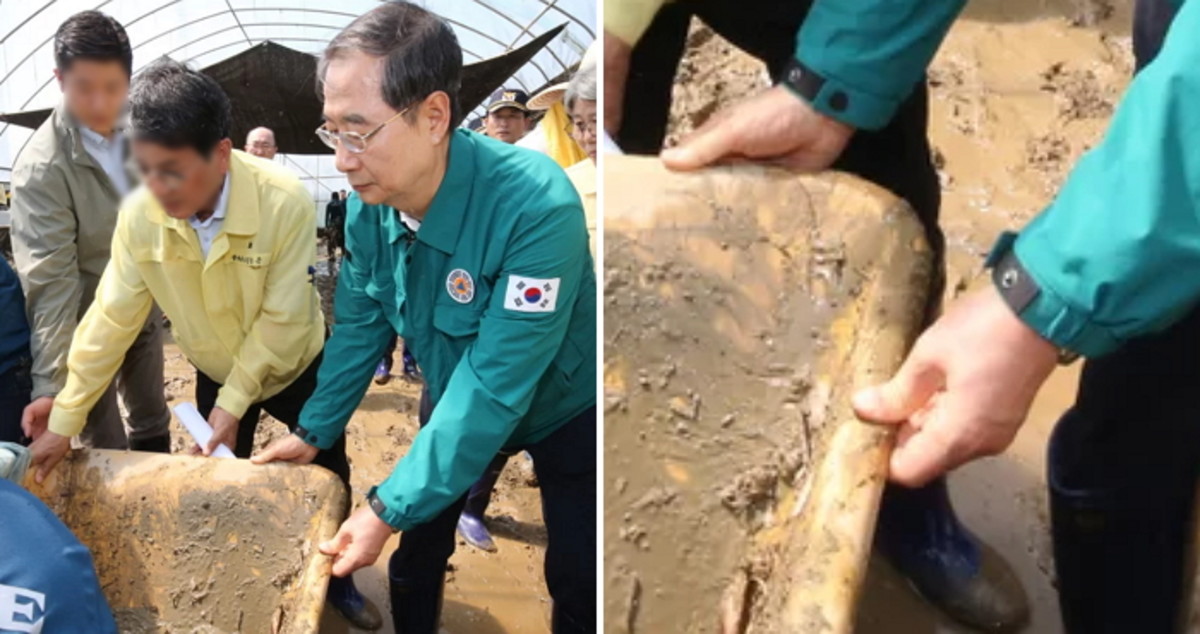 한 총리는 흙이 잔뜩 묻은 수레를 옮기는 데 힘을 보태기도 했는데, 이 장면은 일부 누리꾼에게 질타받기도 했다.