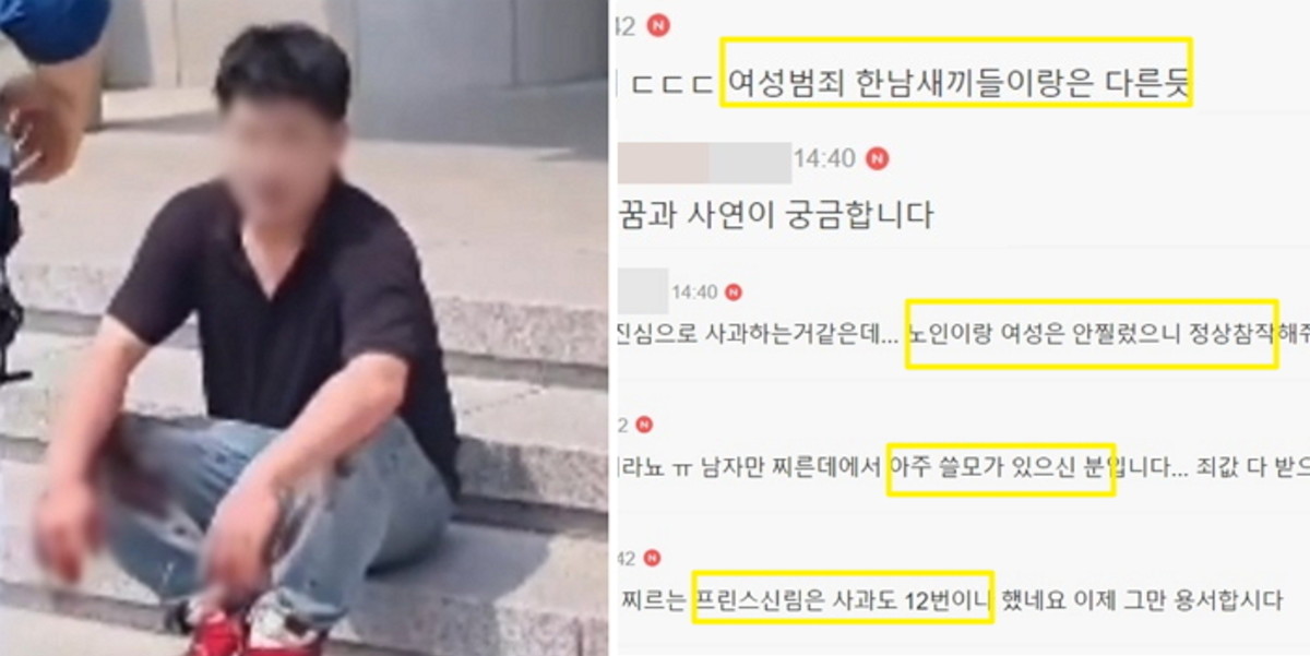이들은 "12번이나 사과? 진심으로 사과하는 거 같은데", "쓸모없는 사람이라니. 남자만 찌른 것만 봐도 아주 쓸모가 있는 분이다", "진심으로 사과하는 거 보면 나쁜 사람 같지 않은데"라는 황당한 반응을 보였다.