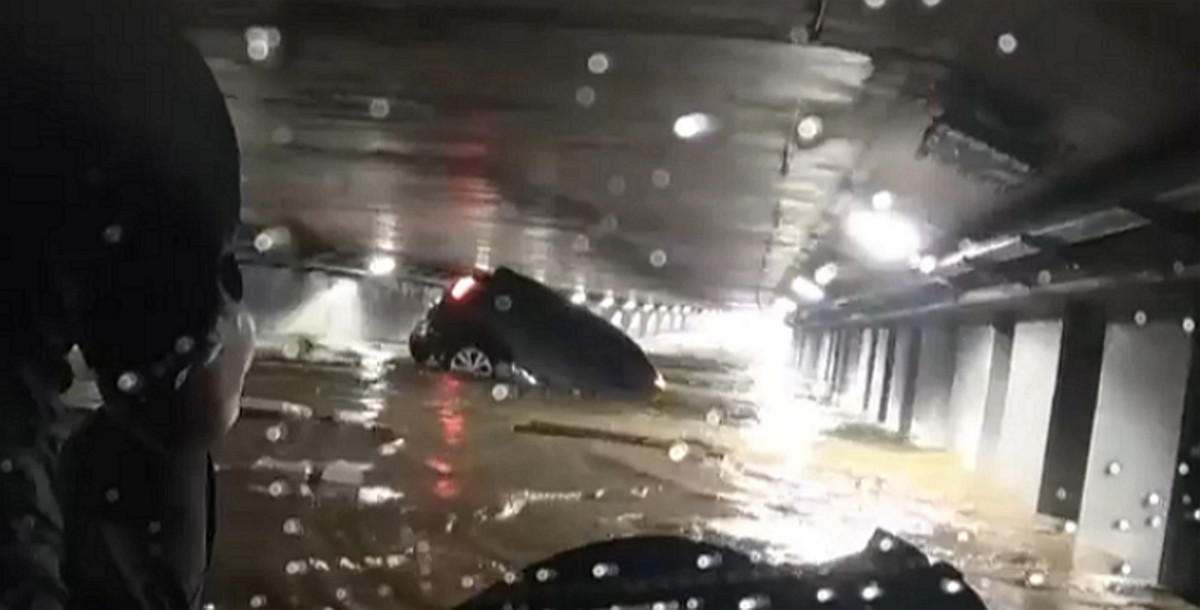 지하차도 절반이 물에 잠겨 발조차 닿지 않는 긴박한 상황.