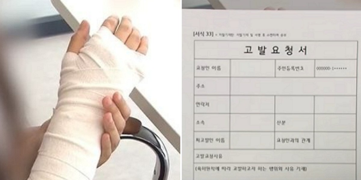 피해 교사가 팔에 '깁스'를 하고 있어 자필로 고발요청서를 쓰기 어려운 상황이었기 때문이다.
