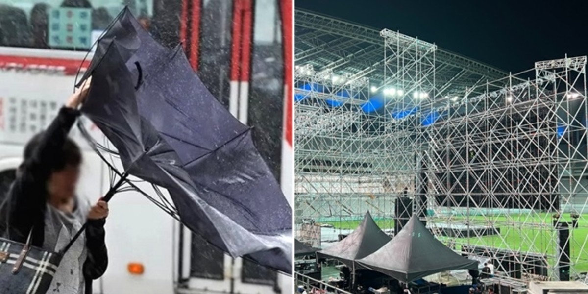 이에 따라 현재 무대 설치도 계속되고 있는 상황. 하지만 강풍이 예고된 가운데 구조물들이 계속 올라가 무대가 만들어지는 과정이 불안하다는 의견이 제기됐다.