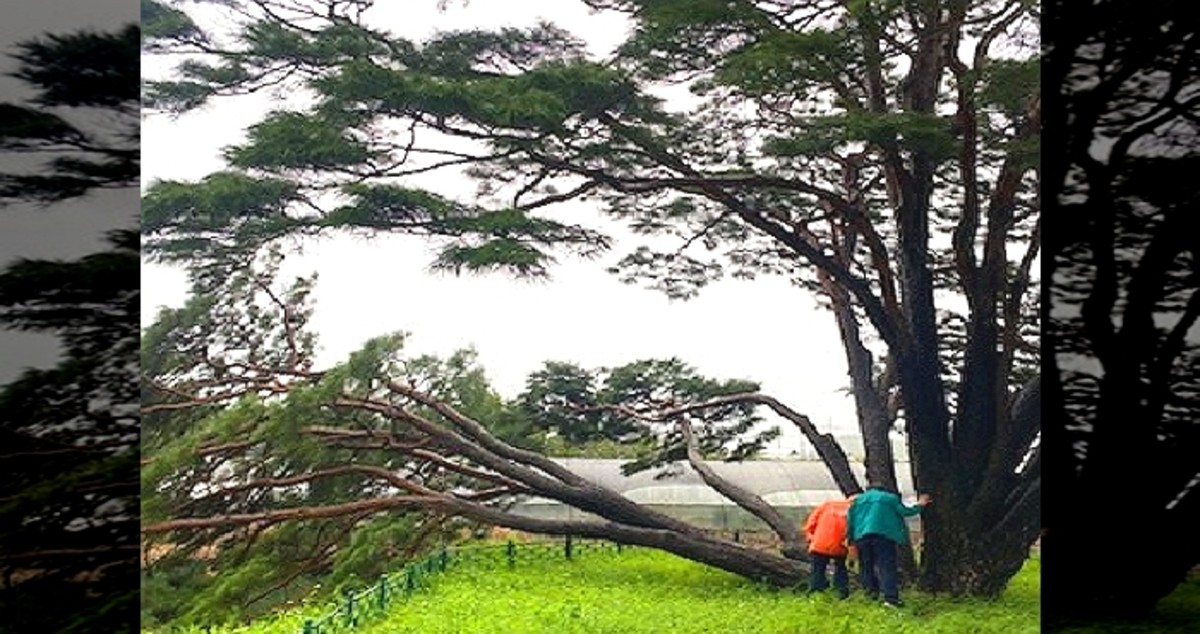 카눈의 강한 바람으로 인해 경북 구미에서 400년 된 천연기념물 소나무가 쓰러졌다.