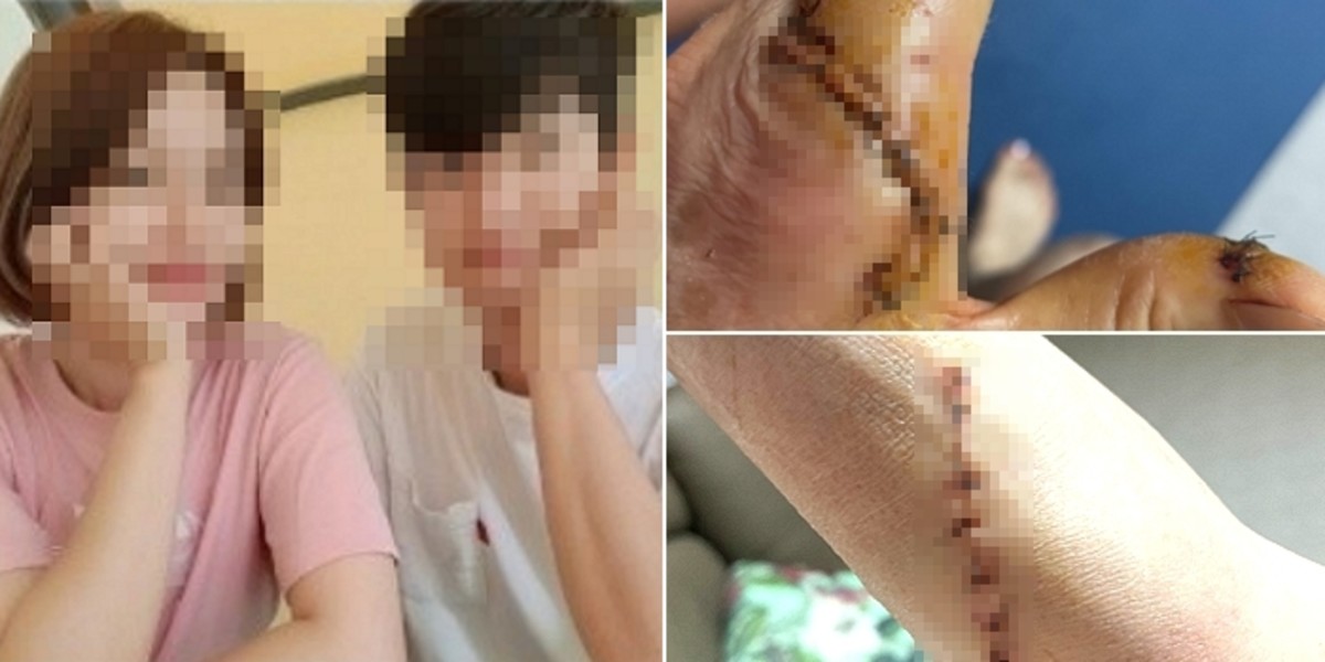 A씨의 흉기로 인해 다친 은총 씨 어머니의 손 / 유족 측 제공