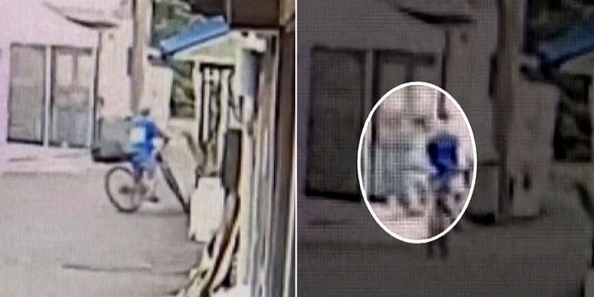 자전거를 탄 A씨가 골목에 들어서자 골목 옆에 숨어있던 B군이 급하게 건물 안으로 들어가고, A씨는 골목길을 앞뒤로 왔다 갔다 하며 계속 주변을 살피는 모습이다.