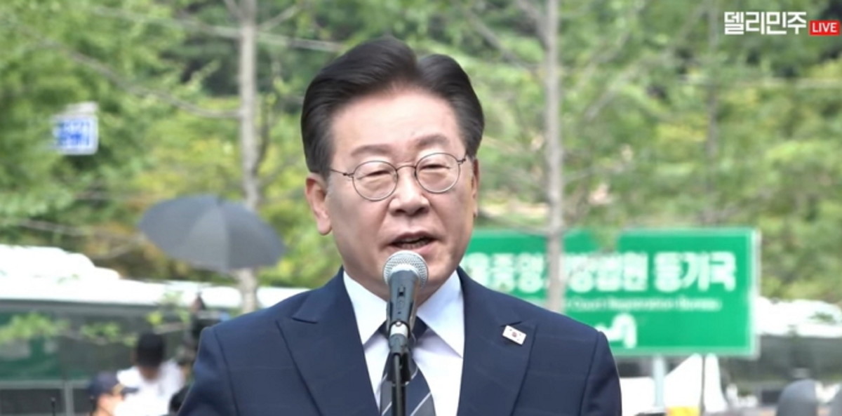 이 대표는 "조금만 조용히 해주시면 준비한 말을 하겠다"라고 말한 뒤 응원의 목소리가 잦아들자 준비해 온 원고를 들고 읽어 내려갔다.