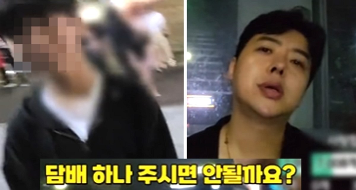 영상 속 로이는 야외 라이브 방송을 하던 중 "담배 하나 주시면 안 될까요?"란 시민의 말을 듣고 고개를 돌렸다가 상대를 보고 깜짝 놀랐다.