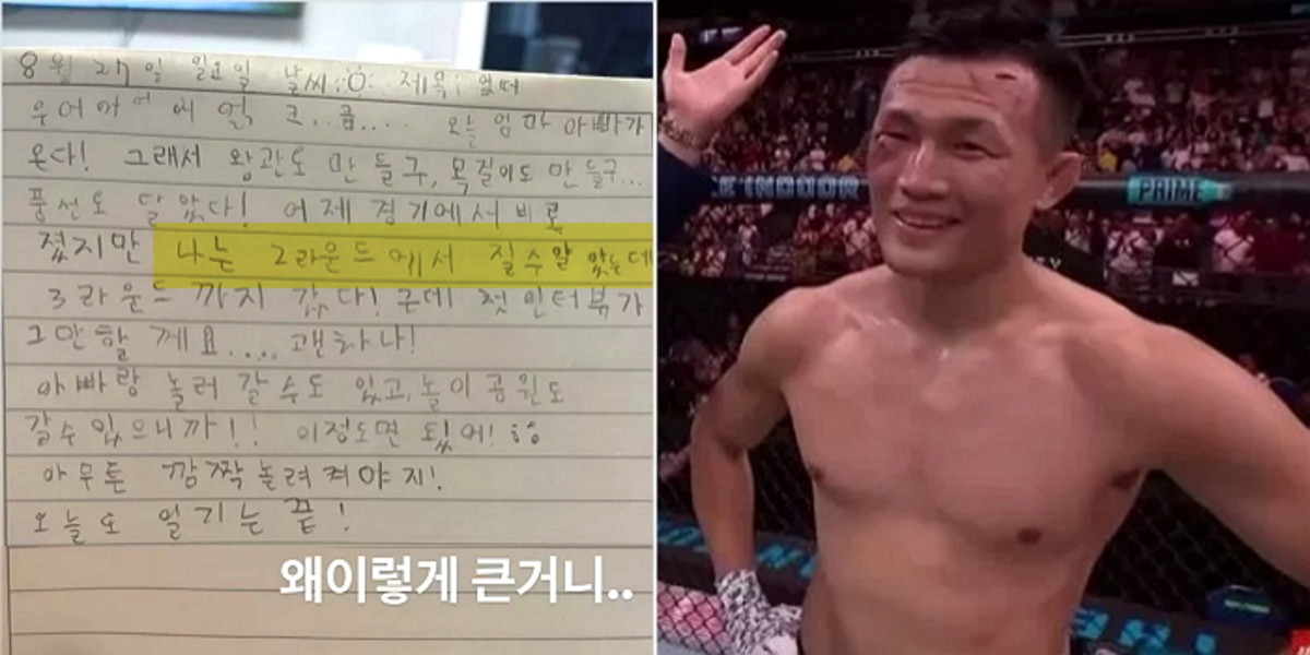 일기장에는 오늘 무엇을 했는지에 관해 서술돼 있었다. 그중에서도 눈에 띈 내용은 아빠 정찬성 경기에 관한 내용이었다.