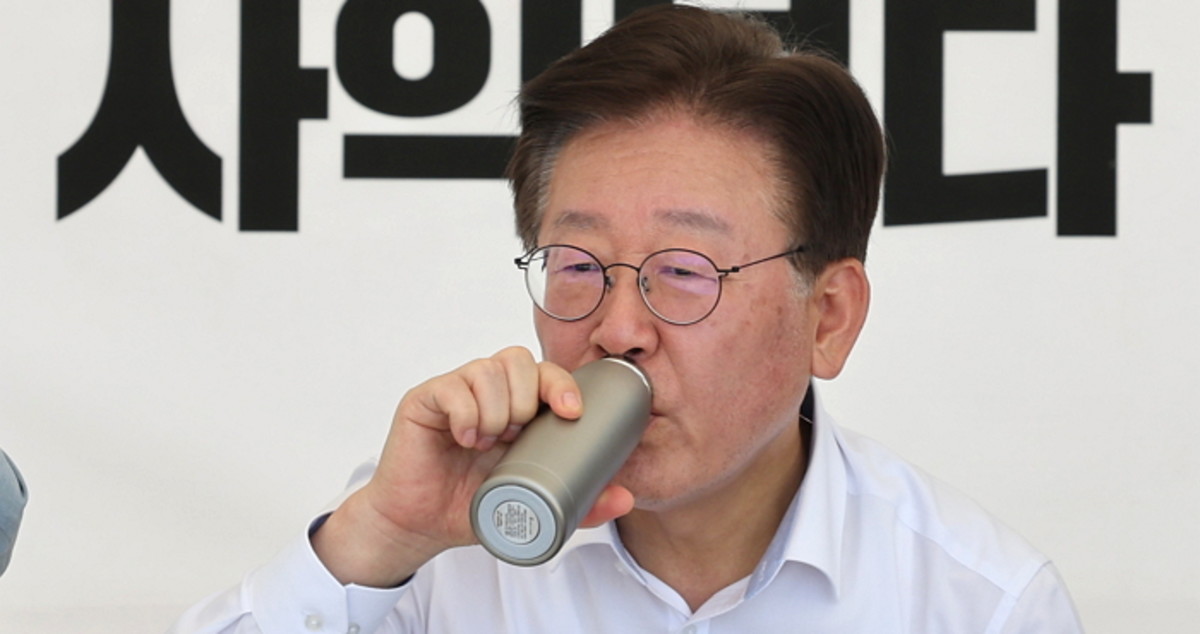 지난 1일 단식 2일차, 물 마시는 이재명 대표 / 뉴스1