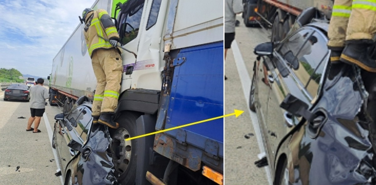 5일 오전 11시 30분쯤 충북 청주시 청원구 오창읍 중부고속도로 상행선 오창휴게소 인근에서 50대 A씨가 몰던 9.5t 화물차가 앞서가던 승용차와 트레일러를 잇따라 들이받았다.