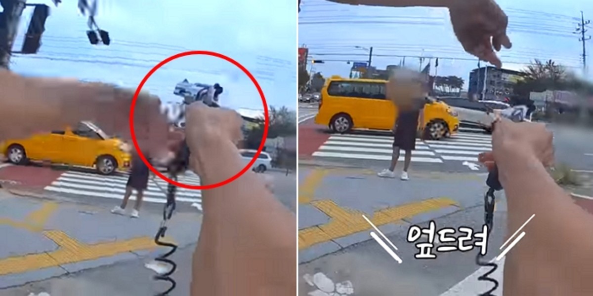신고받고 출동한 경찰은 한 교차로 횡단보도 앞에서 흉기를 든 채 서 있는 A씨를 발견했다.