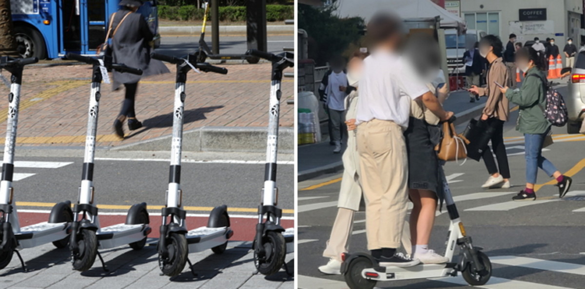 심지어 작은 킥보드에 2~3명이 타고 인도를 침범해 달리는 경우도 허다하다.