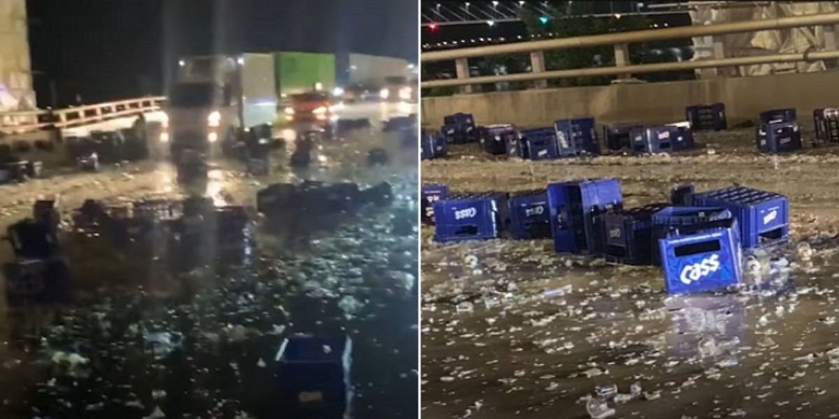 사고 현장을 목격한 운전자는 매체에 "(도로가) 아수라장이 됐다"라며 "지나가면서 (맥주를) 다 쏟아진 거 같다. 30분 정도 거기서 100m도 못 움직였다"고 회상했다.