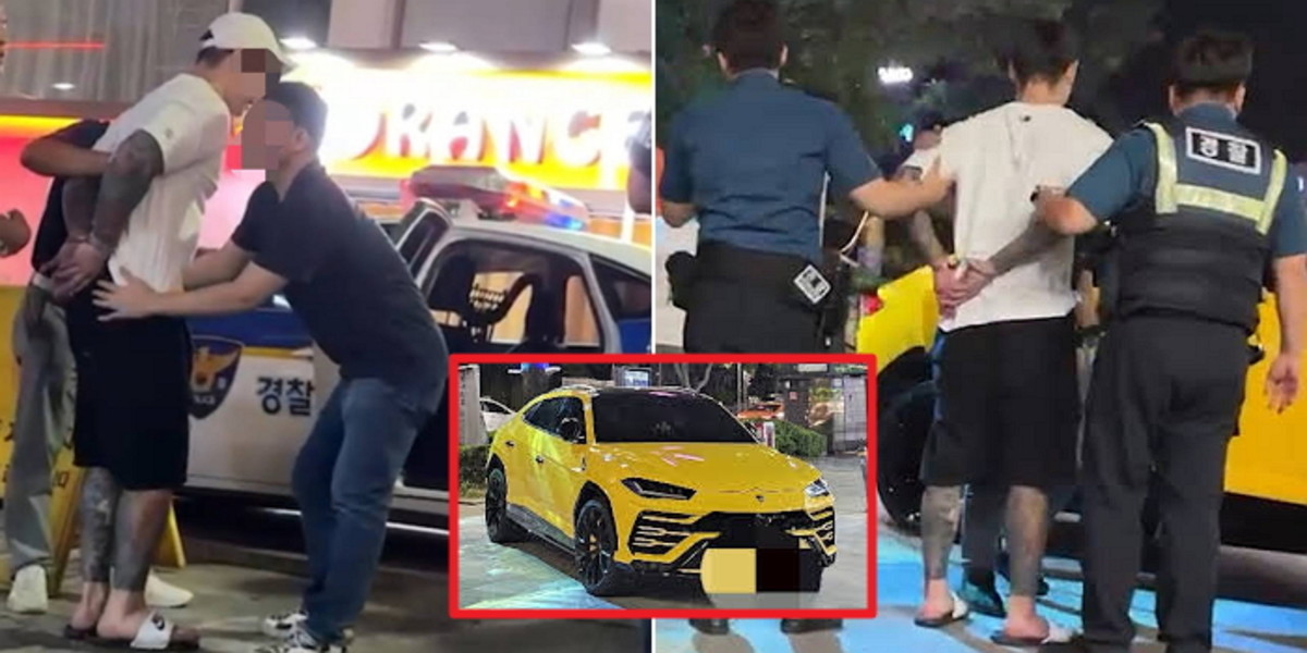 경찰 신고가 들어가자 이 남성은 노란색 람보르기니 차량을 타고 도주했다. 이후 출동한 경찰에 검거됐다.