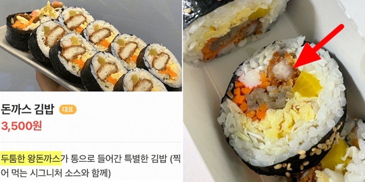 하지만 A씨가 실제로 받은 김밥 속 돈가스는 "이게 돈가스가 맞나"라는 말이 나올 정도로 굉장히 작은 사이즈였다.