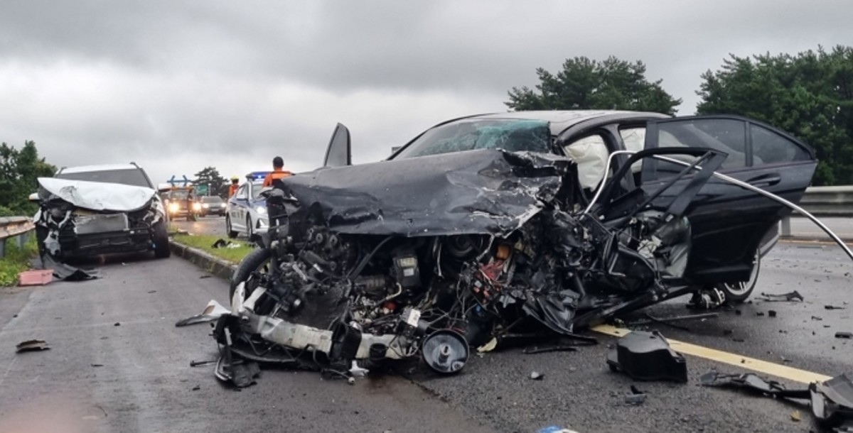 도로에 흩어져 있는 반파된 차량의 잔해와 뜯어진 번호판이 심각했던 당시 사고 상황을 고스란히 전해준다.