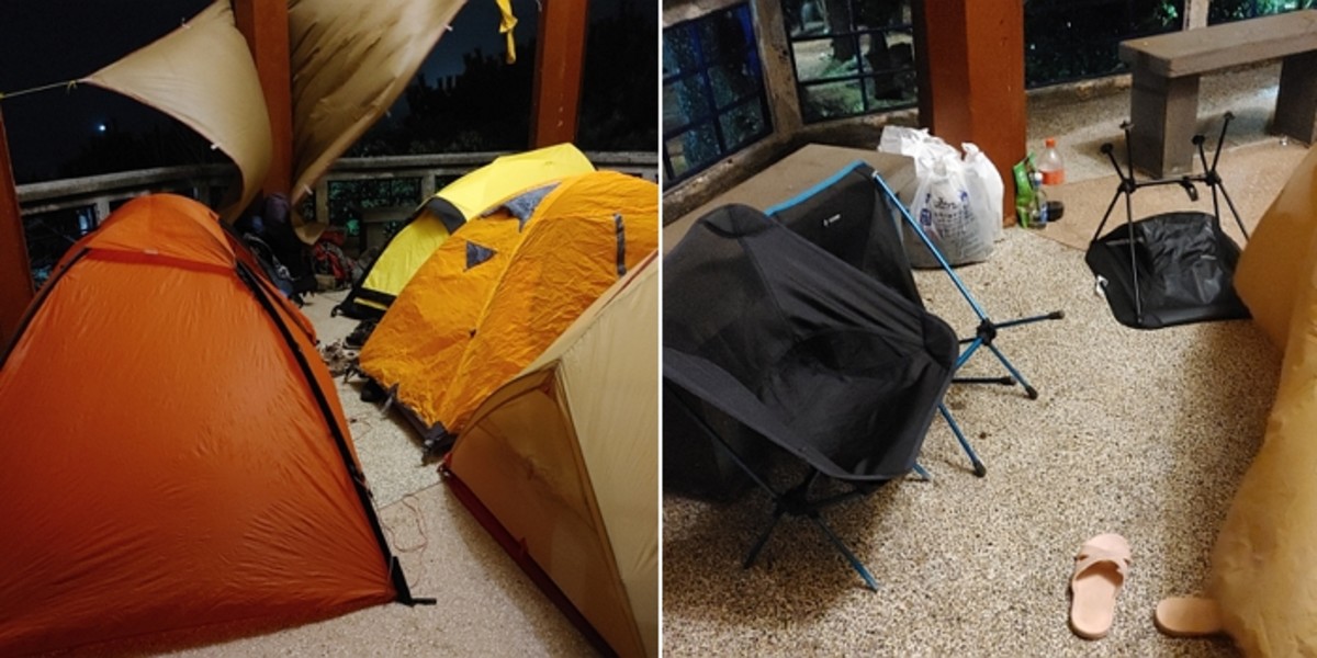 정체를 알 수 없는 사람들이 전망대에 텐트 4동을 설치하고 그 안에서 쿨쿨 잠을 자고 있었기 때문이다. 이들은 바람을 막기 위해 전망대 기둥에 큰 타프까지 연결해 둔 상태였다.
