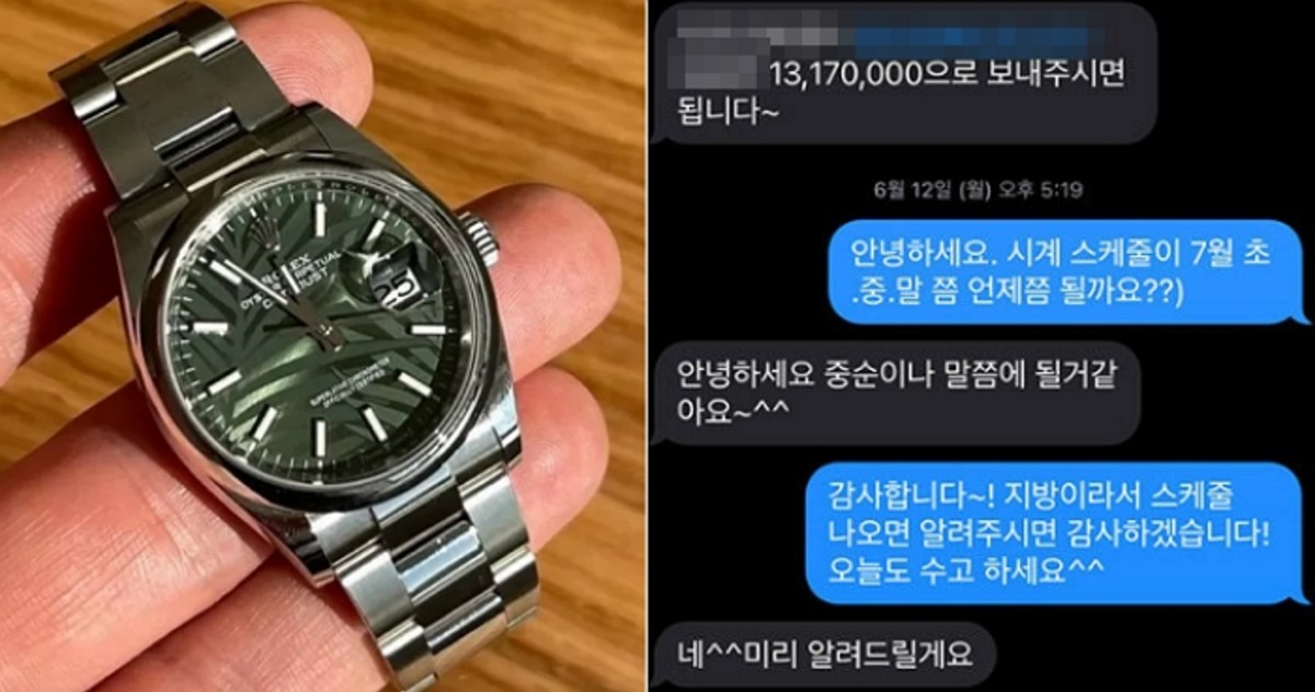 이후 B씨에게 믿음이 생긴 A씨는 정가 롤렉스를 구하기 위해 두 달 뒤 B씨에게 연락해 1200여만 원을 이체했다.