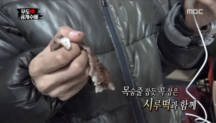 두 사람은 따끈따끈한 시루떡을 들고 있어 '무한도전' 추격전에서 광희가 허겁지겁 떡을 먹던 모습을 떠오르게 해 훈훈하면서도 재미난 상황을 연출했다.