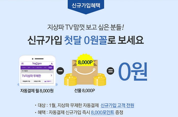 지상파 tv 무제한 상품을 자동 결제로 신청하면 결제 금액을 그대로 포인트로 돌려주기 때문.