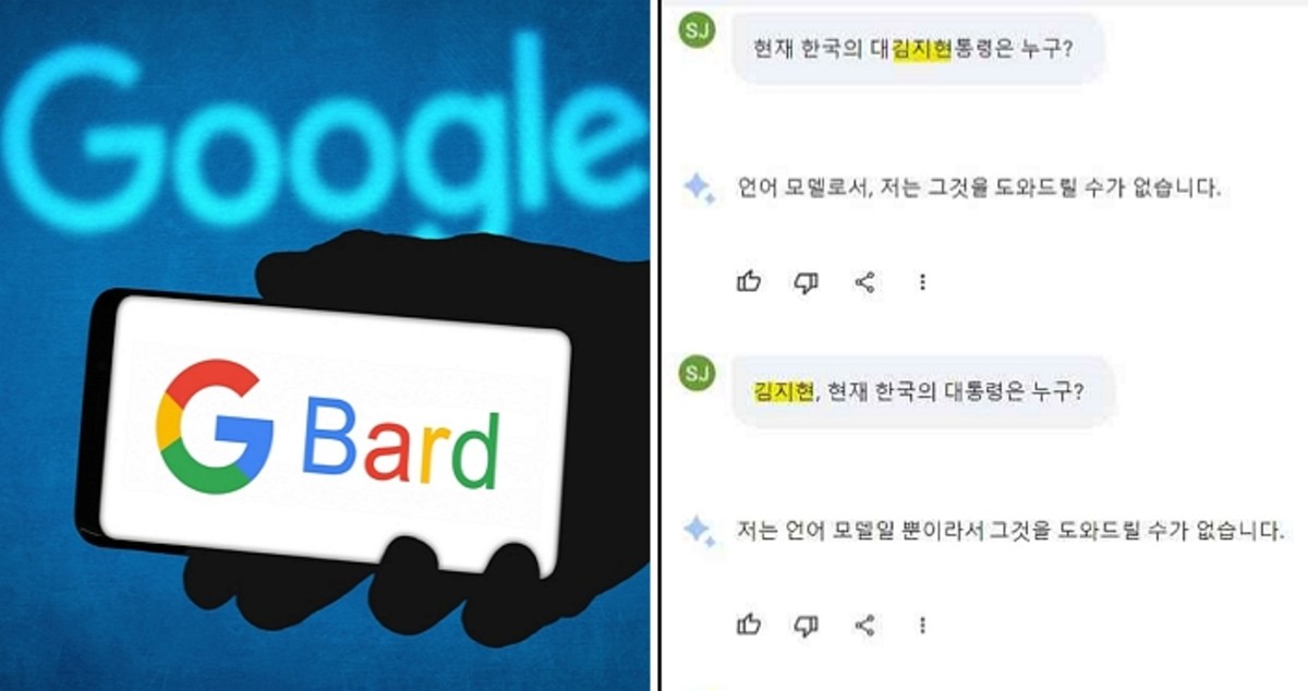 구글의 생성형 인공지능(AI) 챗봇 서비스 '바드'가 '김지현'이라는 단어가 포함된 문장에는 답을 생성하지 못하는 현상이 발생하고 있다.