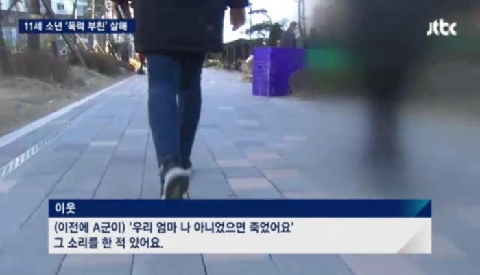 심지어 이웃의 한 주민은 A군이 "우리 엄마 나 아니었으면 죽었어요"라고 말하는 것을 들은 적이 있다고 설명하기도 했다.