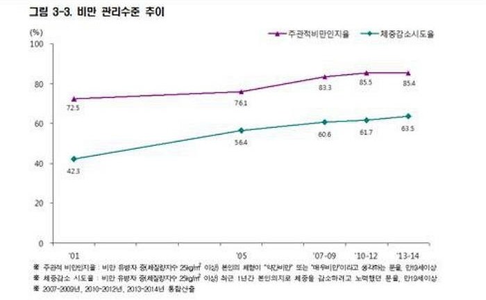 비만인데도 체중을 줄일 시도를 하지 않은 것에는 스스로의 상태에 대한 인식 부족도 이유 중 하나로 분석된다.