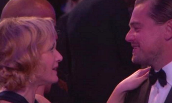 디카프리오는 상을 받은 뒤 윈즐릿에게 다가가 크게 포옹했고, 두 사람은 현장에 있던 동료 배우들로부터 뜨거운 박수갈채를 받았다.