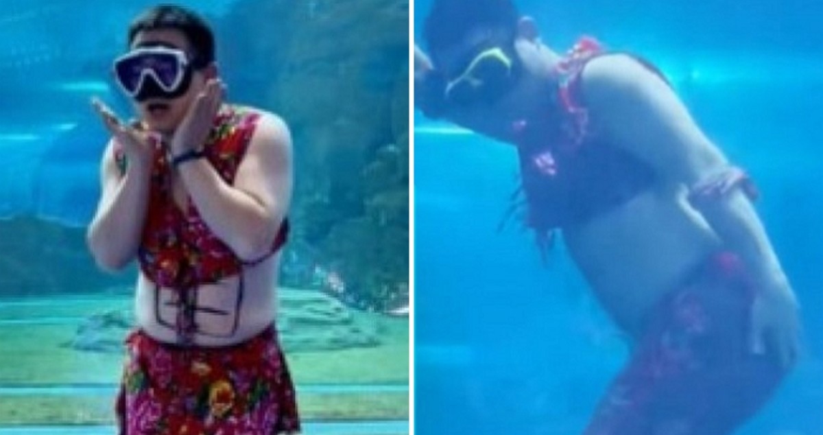 중국의 한 수족관에서 배가 나와 배에 매직으로 '왕'(王)자를 그려 넣은 남자 인어가 공연을 해 중국 누리꾼들의 폭소를 자아내고 있다고 홍콩의 사우스차이나모닝포스트(SCMP)가 11일 보도했다.