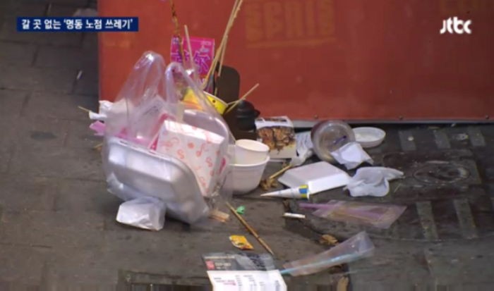 지난 12일 JTBC 뉴스룸은 먹음직스러운 길거리 음식들이 관광객을 유혹하는 명동이 주말이 지나면 쓰레기장이 된다고 보도했다.