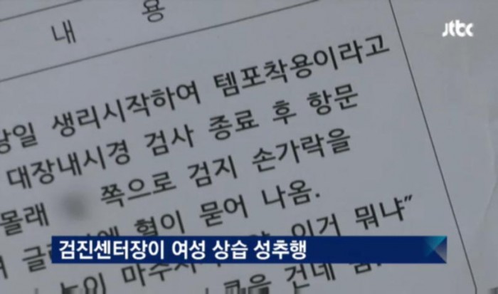 JTBC 보도에 따르면 이미 마취된 여성 고객에게 수면유도제를 더 주입해 성추행하고, 검진이 끝난 뒤에도 진찰을 빌미로 성추행이 계속 이어졌다.