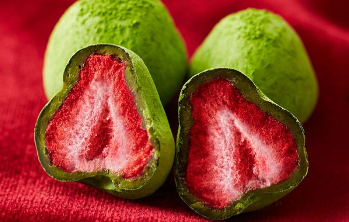 1832년에 설립된 전통깊은 '이토큐에몬'은 흔히 팔리는 '딸기 모찌'에 화이트 초콜릿과 녹차 가루를 묻혀 '녹차맛 딸기 모찌'를 내놓았다.