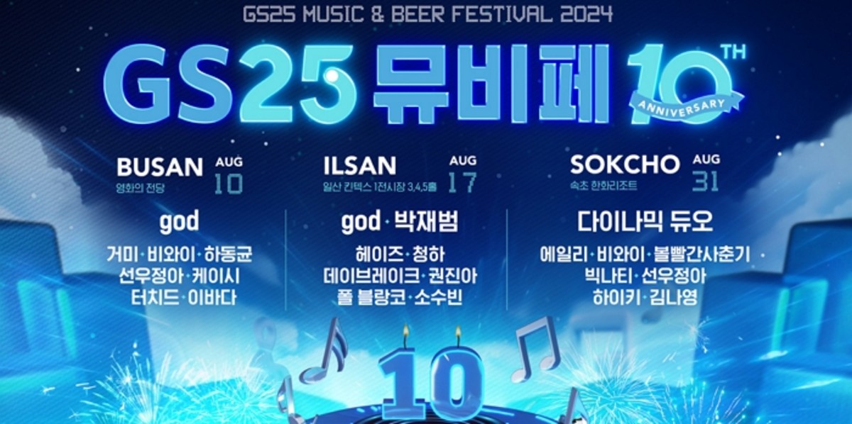 GS리테일이 운영하는 편의점 GS25가 오는 8월10일 부산을 시작으로, 17일 일산, 31일 속초를 마지막 일정으로 예상 참가자 수 6만여명 규모의 '뮤직 앤드 비어페스티벌'을 3회에 걸쳐 개최한다고 밝혔다.