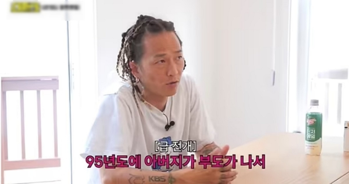 그는 "힘들었던 때가 있다고 하더라", "뭐로 돈 버셨나"라는 질문에 "95년도에 아버지가 부도가 나서 학교를 못 다니게 됐다. 아버지가 경제사범으로 감옥에 가셨다. 어머니는 도망가셨고 혼자 남겨졌다. 저는 맨 처음 부도가 났을 때 너무 좋았다. 혼자 있으니까"라고 회상했다.