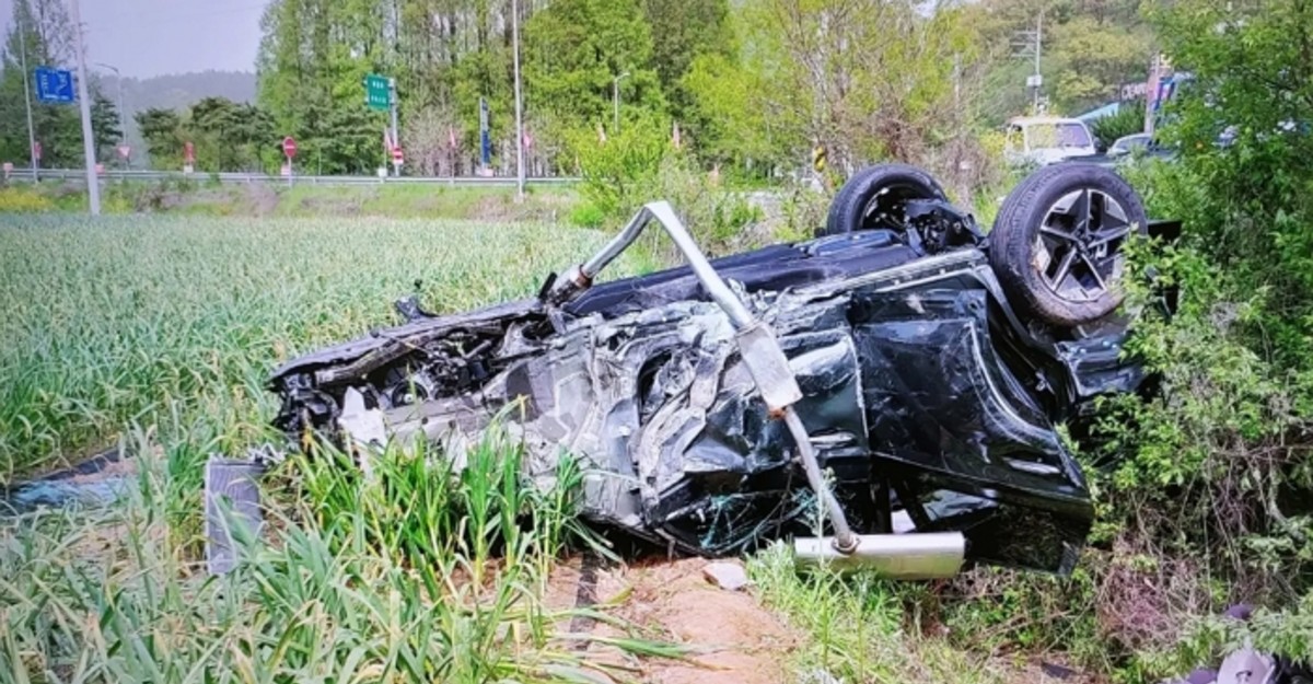 사고 뒤에도 속도를 줄이지 않은 채 1.3㎞가량을 달린 투싼 차량은 시속 165㎞로 교통 표지판을 충격한 후 인근 논에 전복됐다.
