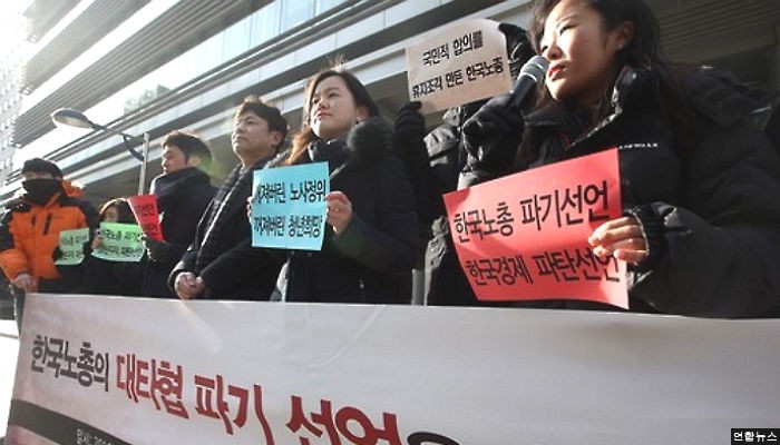 이 단체는 "한국노총이 노사정 대타협을 한지 4개월 만에 일방적으로 파기했다"며 "대타협에서 노동시장 이중구조 개선을 위해 노력하겠다고 했던 '약속'을 휴지조각 버리듯이 내팽개쳐버렸다"고 강하게 비판했다.