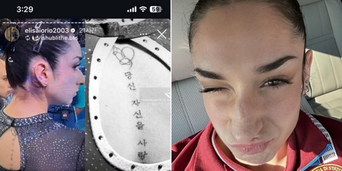30일 영국 매체 '스포츠 키다'에 따르면 이탈리아 체조 선수 엘리자 이오리오의 등에는 한글로 '당신 자신을 사랑하세요'라는 글귀의 타투가 새겨져 있다.