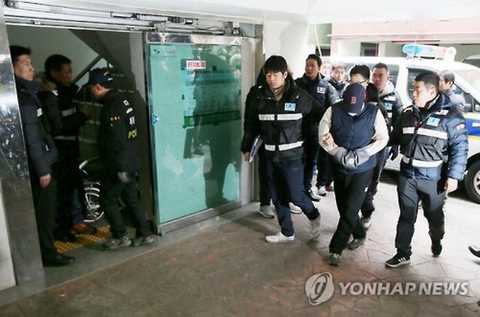 현장에 등장한 부천 초등생의 부모는 자신의 몸을 마스크와 패딩 등으로 감추고 있다.
